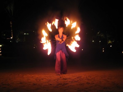 Далее зрители переместились к подножью митридатской лестницы, где их уже ждало новое зрелище. Его представил клуб под названием «Повелители огня». Ребята, под руководством капитана Александра, предоставили свою программу выступления. В нее входило исполнение трюки, отработанное коллективом. Отсутствие музыкального сопровождения не уменьшило зрелищности огненного шоу. Выступление этого клуба тоже не оставило равнодушными никого из пришедших.