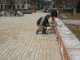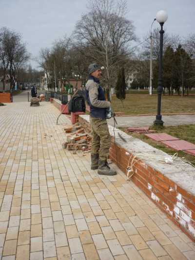 Как сообщили «Кафе» в управлении городского хозяйства, был закуплен некачественный кирпич, который рассыпался за зиму. Рабочие снимают плиты, покрывающие верх стены, осветительные фонари, убирают электрические провода. Затем удаляют поврежденные кирпичи, и кладут новые.