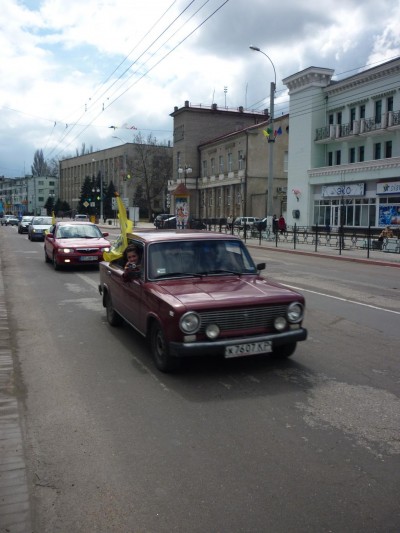 В автопробеге участвовало более 20 автомобилей, которые проехали колонной по улицам города и посетили памятные места.