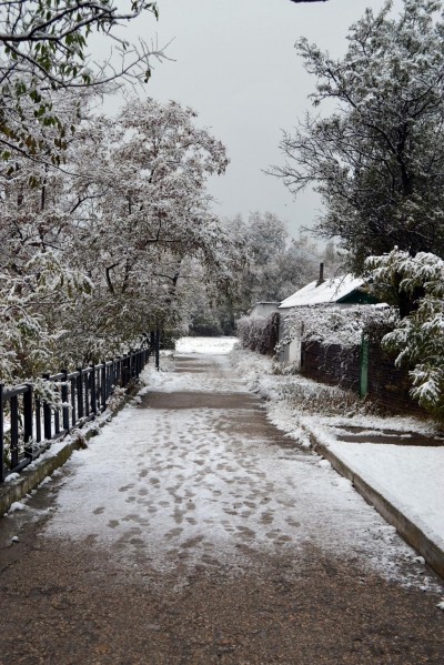 Еще не успел закончиться ноябрь, как в город пришла зима. 11. 11. 11. – в эту интересную дату в Керчи выпал первый снег. Белые хлопья покрыли дорожки, опавшую листву и цветы. Пелена снега, как одеялом накрыла город. Взрослые, словно дети, радуются снегу, а детвора уже лепит снеговиков и катается на санках. Животные и птицы тоже не испугались холода и с удовольствием приняли снег.