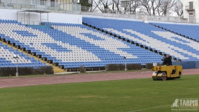 В Симферополе поле стадиона "Локомотив" перед матчем 21 тура чемпионата Украины с участием "Таврии" и донецкого "Металлурга" привели в порядок.